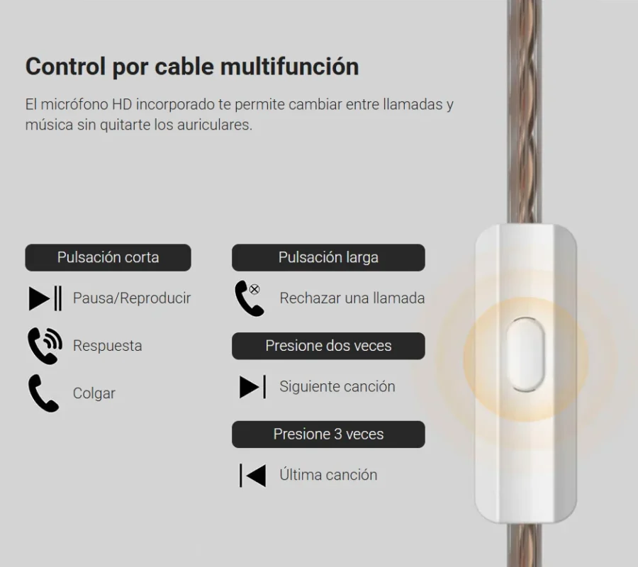 El KZ DQS incorpora un micrófono HD con control en línea, que te permite responder llamadas, pausar o reproducir música y cambiar de pista sin necesidad de sacar el teléfono del bolsillo. Esta funcionalidad mejora la experiencia de uso diario, especialmente en movimiento.