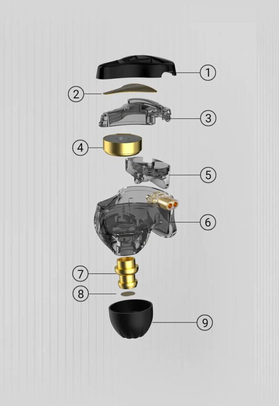 El KZ DQS incorpora una carcasa auditiva de diseño semiabierto con una cubierta frontal metálica, especialmente desarrollada para minimizar los reflejos internos de las ondas sonoras. Esta arquitectura mejora notablemente la calidad del sonido y la experiencia auditiva en general.