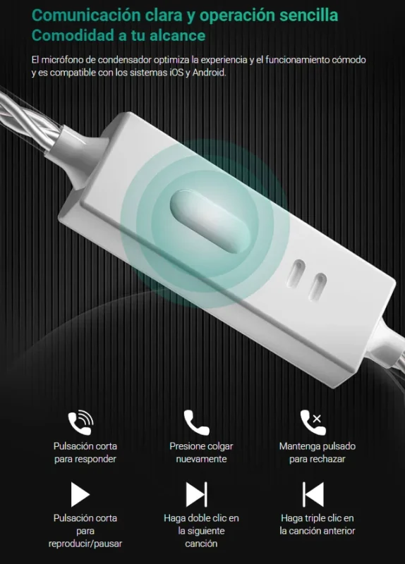 El control en línea permite cambiar entre música y llamadas sin complicaciones, brindando una experiencia de uso fluida.