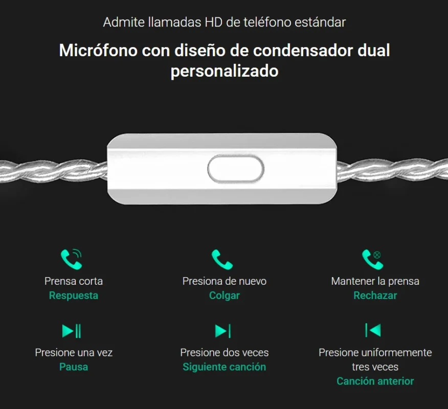• Driver híbrido: 1 dinámico + 1 armadura balanceada